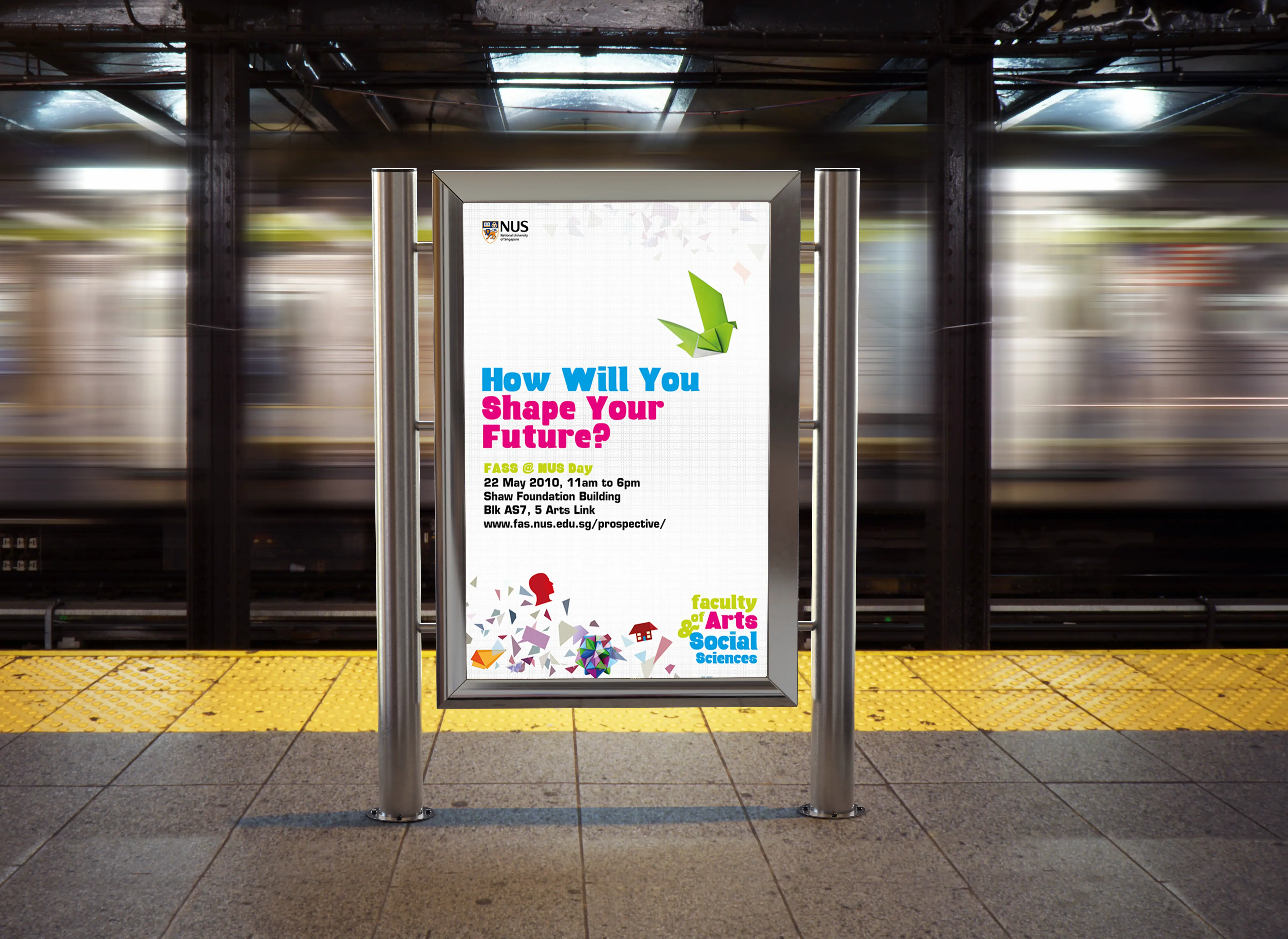 The brief was to develop a playful and engaging key visual and supporting collaterals for the NUS Faculty of Arts and Social Sciences recruitment campaign. Instead of using the official faculty crest, the design needed to stand on its own as a distinctive visual identity, flexible enough to be applied across recruitment materials and events.